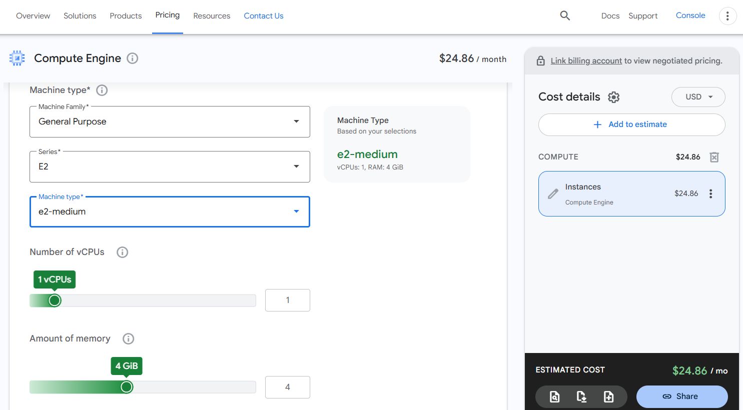 Nieco słabsza, ale standardowa maszyna z 1 vCPU wyniosłaby 24 dolary, ale to wciąż jest 4 razy większa kwota niż w Hetznerze. Tak to wygląda: