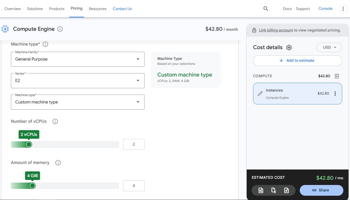 Zdecydowałam się na postawienie bloga u Niemca - na Hetzner Cloud. Interfejs tego providera jest prosty jak budowa cepa i założenie serwera zajmuje chwilę. Wersja VM z 2 vCPU, 4 GB RAM, 40 GB space’u na dysku i 20TB wychodzącego trafficu kosztuje 4,05 Euro na miesiąc, czyli po obecnym kursie niecałe 20 zł. Dla porównania: podobna VM na Google, chodząca 24h na dobę kosztowałaby ponad 40 dolarów miesięcznie i to bez uwzględnienia trafficu oraz statycznego adresu IP. Tak to wygląda na kalkulatorze Google. Screen dla potomności:
