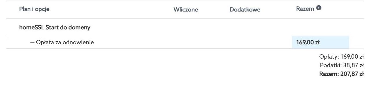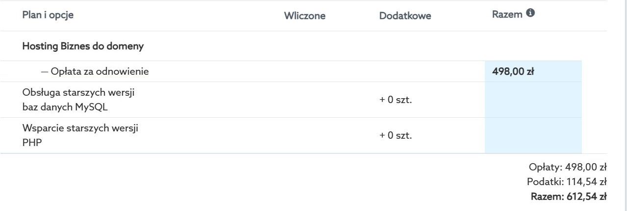 Jakież było moje zdziwienie, gdy po blisko roku przyjaznej współpracy dostałam od Home.pl maila z propozycją przedłużenia oferowanych usług na kolejny rok, ale już znacznie wyższej cenie. W sumie: